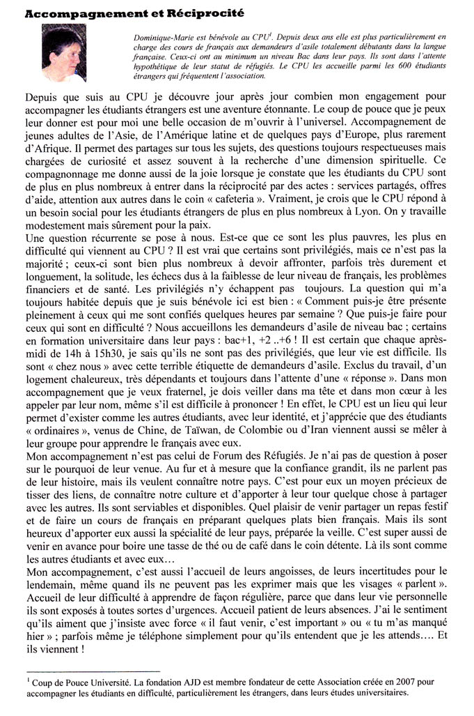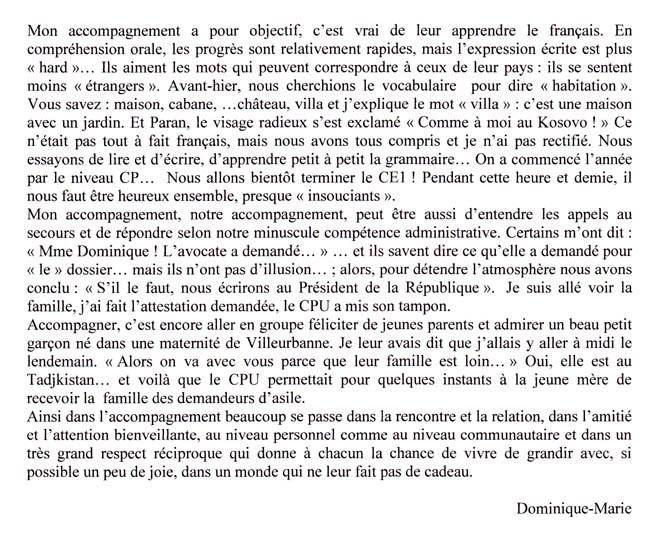 Nouvellles de Marie-Antoinette, bénévole au CPU